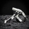 Anneau serpentin aux écailles et à l’enroulement hypnotiques, évoquant les grimoires anciens. Le mouvement sinueux du reptile symbolise la tentation dans la plus pure tradition gothique.