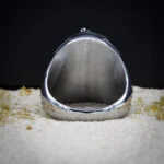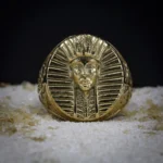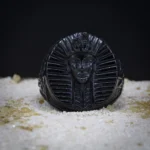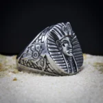 Cette bague au design aussi imposant que fascinant, évoque puissamment l’esthétique de l’ancienne Égypte. Ses contours sont joliment ornée de hiéroglyphes et d’un profil impérial rappelant le masque mortuaire des pharaons. Cette pièce donne une allure à la fois sombre et luxueuse, comme un vestige de la grandeur des dynasties égyptiennes.